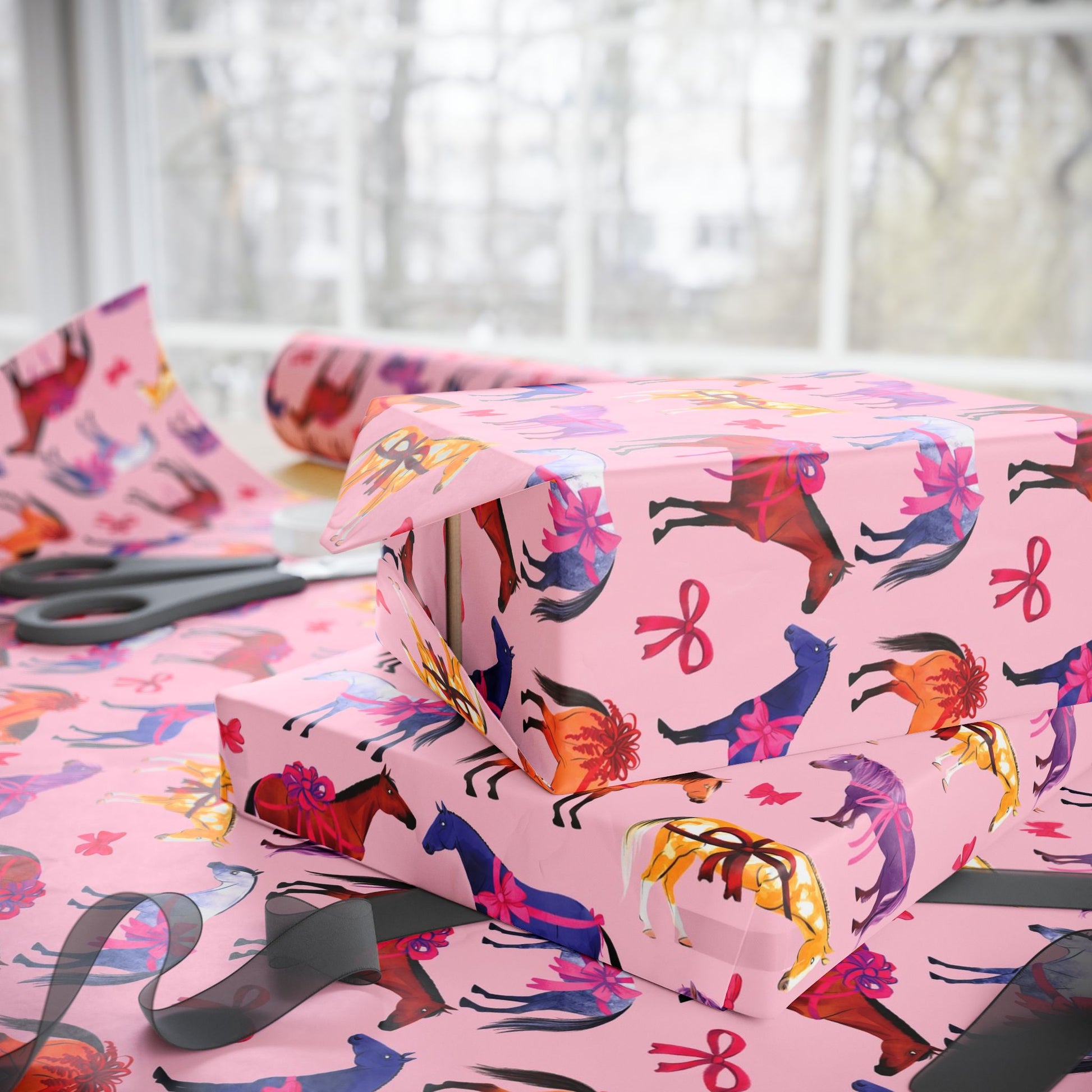 Colorful Horse Breeds | Equestrian Gift Wrap Roll - Pink